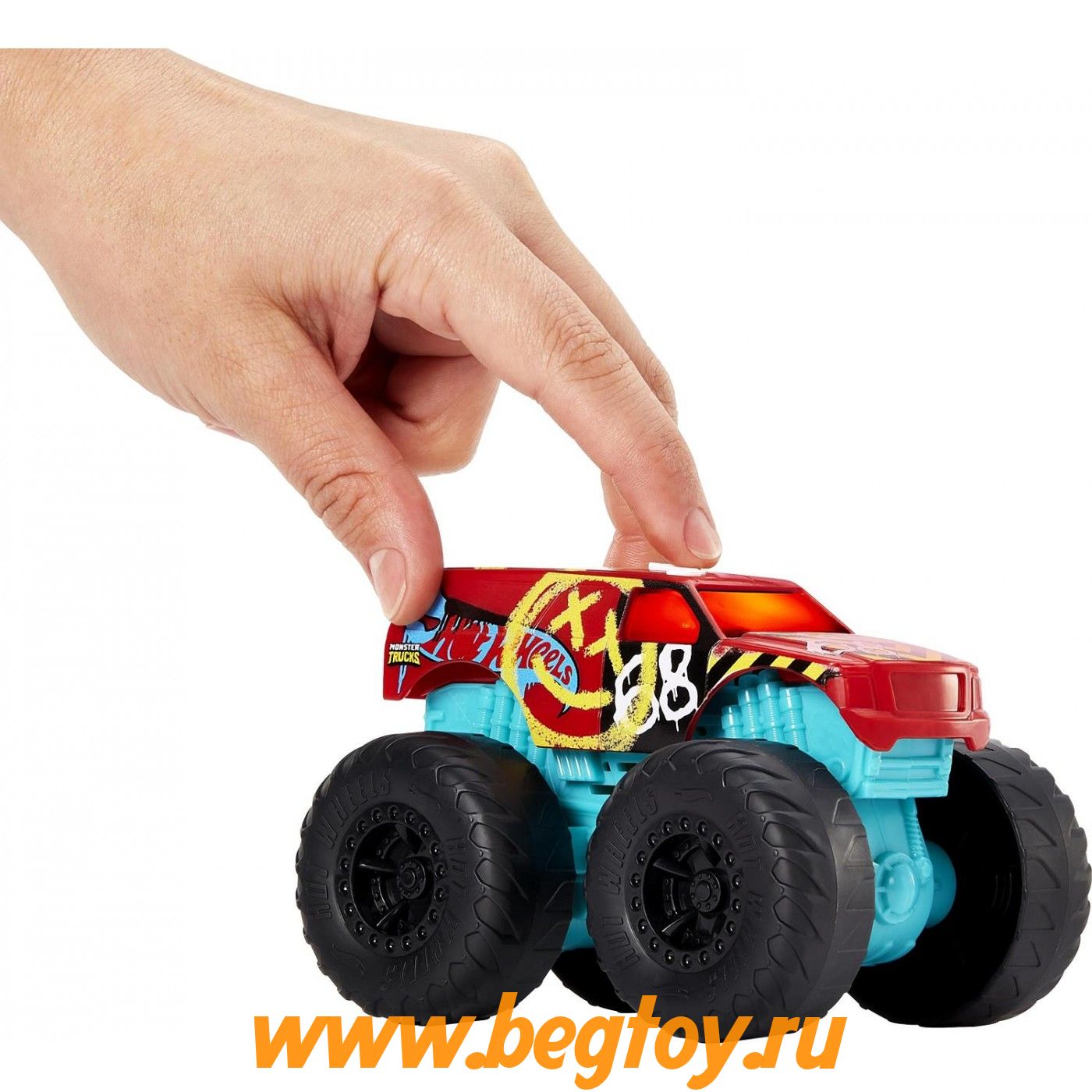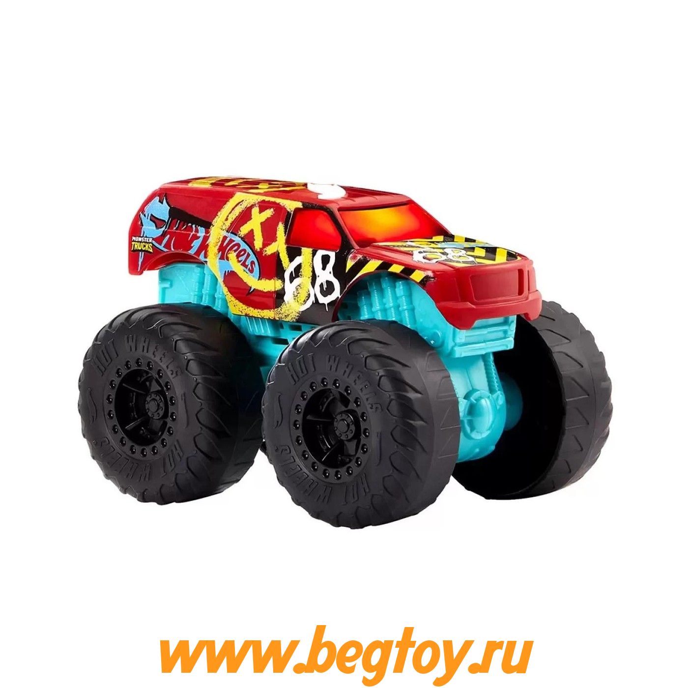 • Совместим с треками Hot Wheels: Запускайте монстр траки по трекам и устраивайте еще более захватывающие гонки!