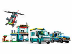 Создайте увлекательную историю с LEGO CITY 60371. Набор включает игрушечный пожарный вертолет, скорая помощь, полицейский внедорожник и мотоцикл мошенников, помогая создавать увлекательные истории о спасательных операциях.